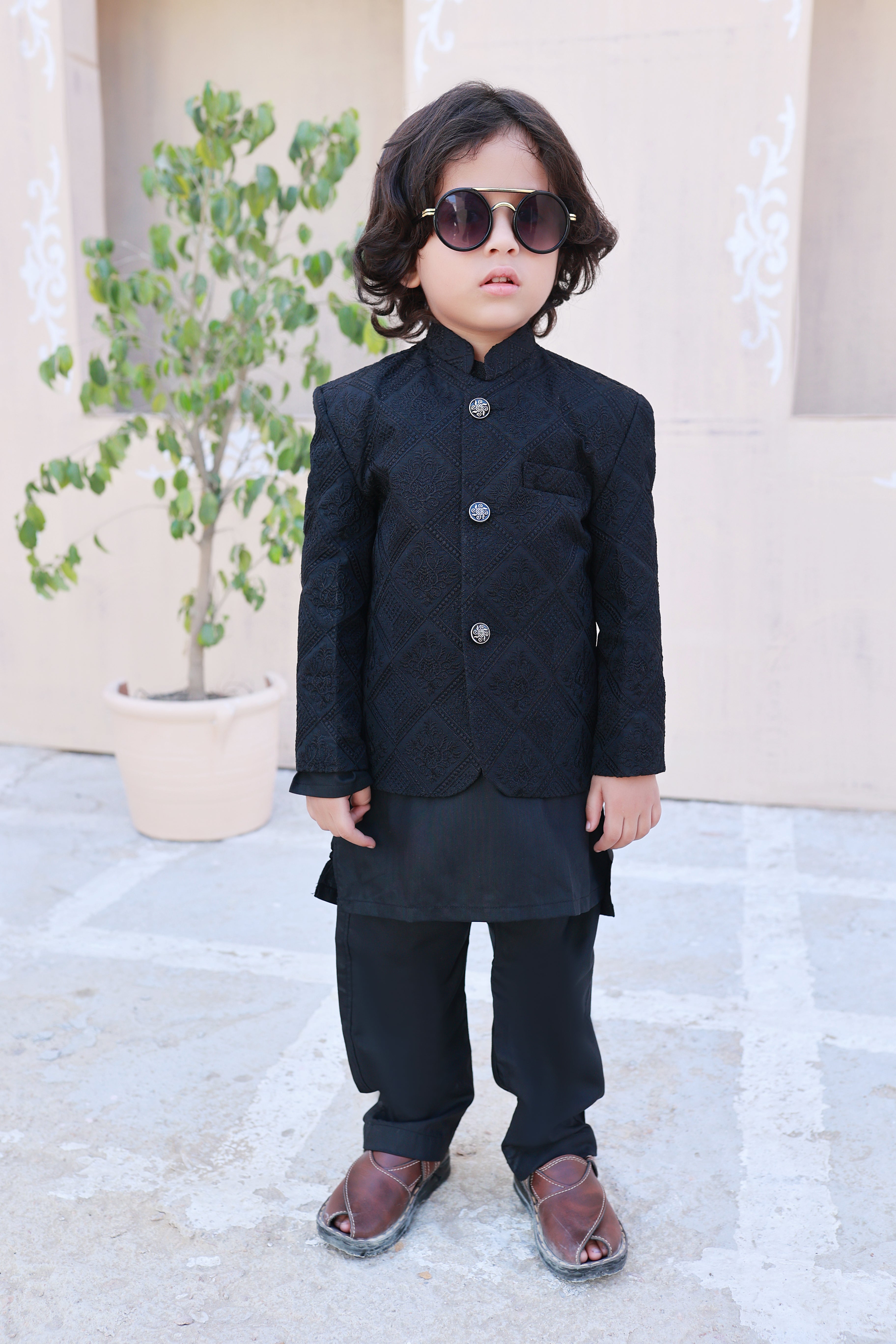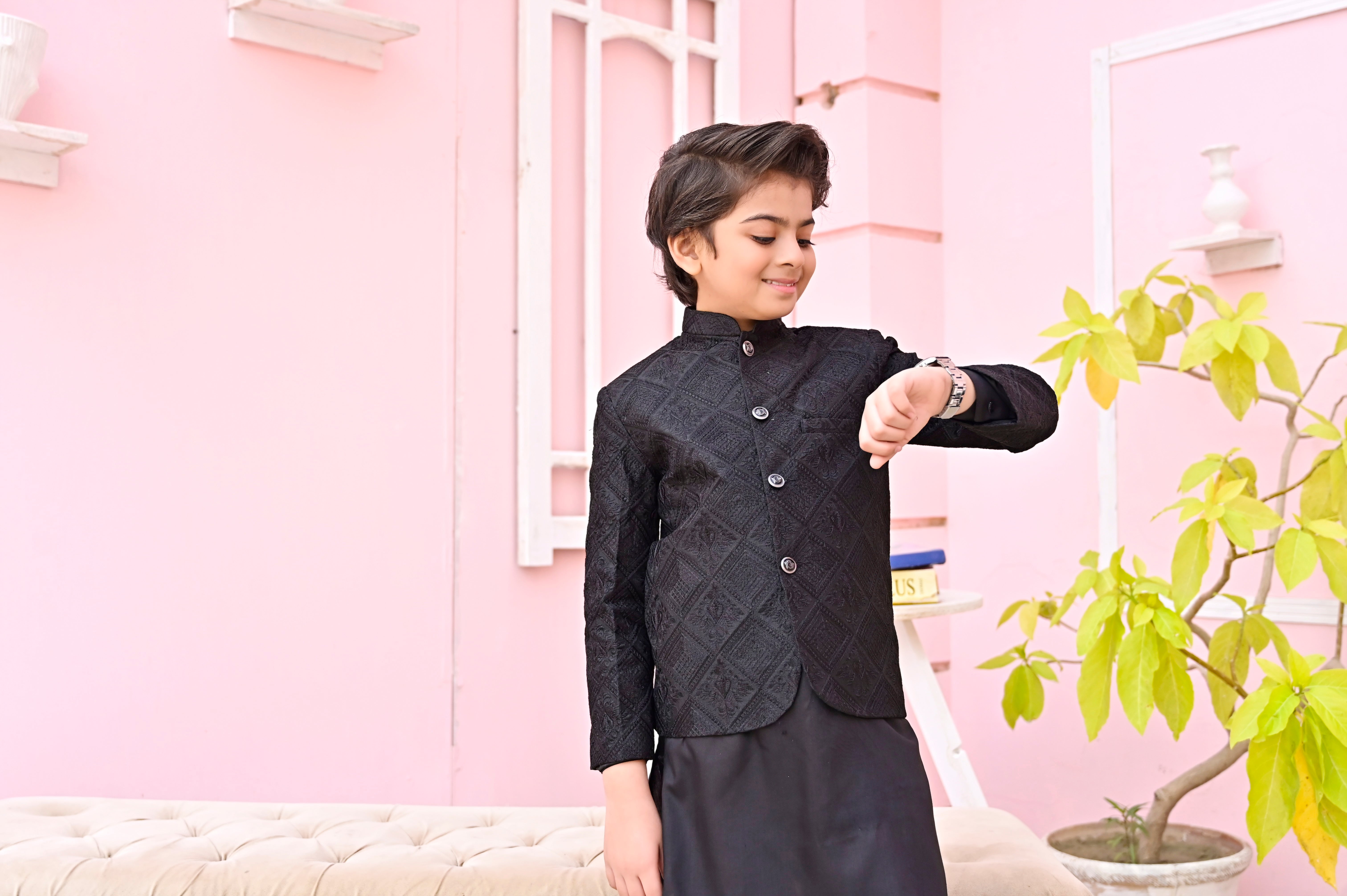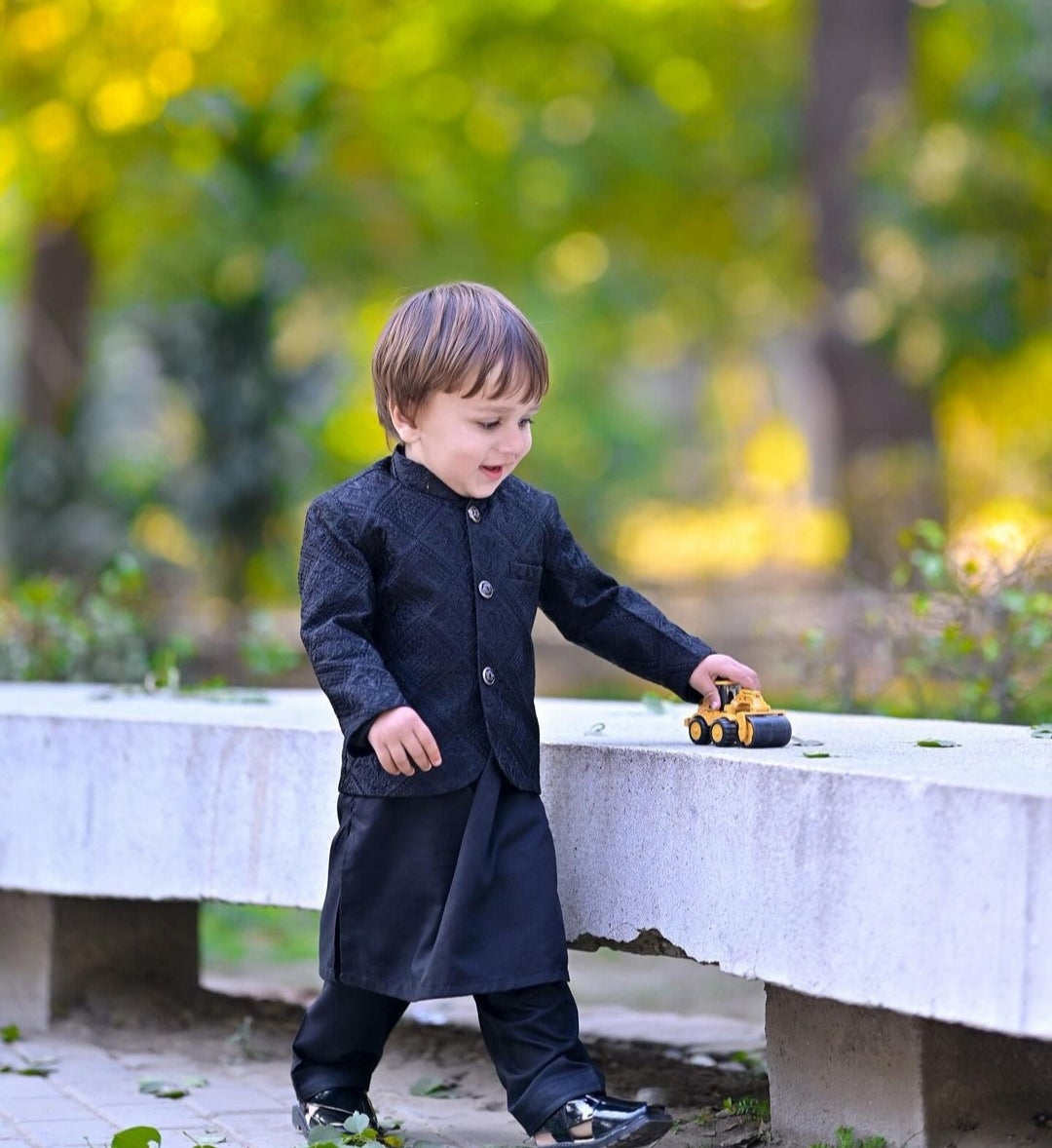 This black prince coat is a stunning piece with intricate embroidery. It looks elegant and majestic. The black colors adds a touch of sophistication, while the embroidery adds a unique and eye-catching detail. It’s the perfect choice for a special occasion or when you want to make a statement.