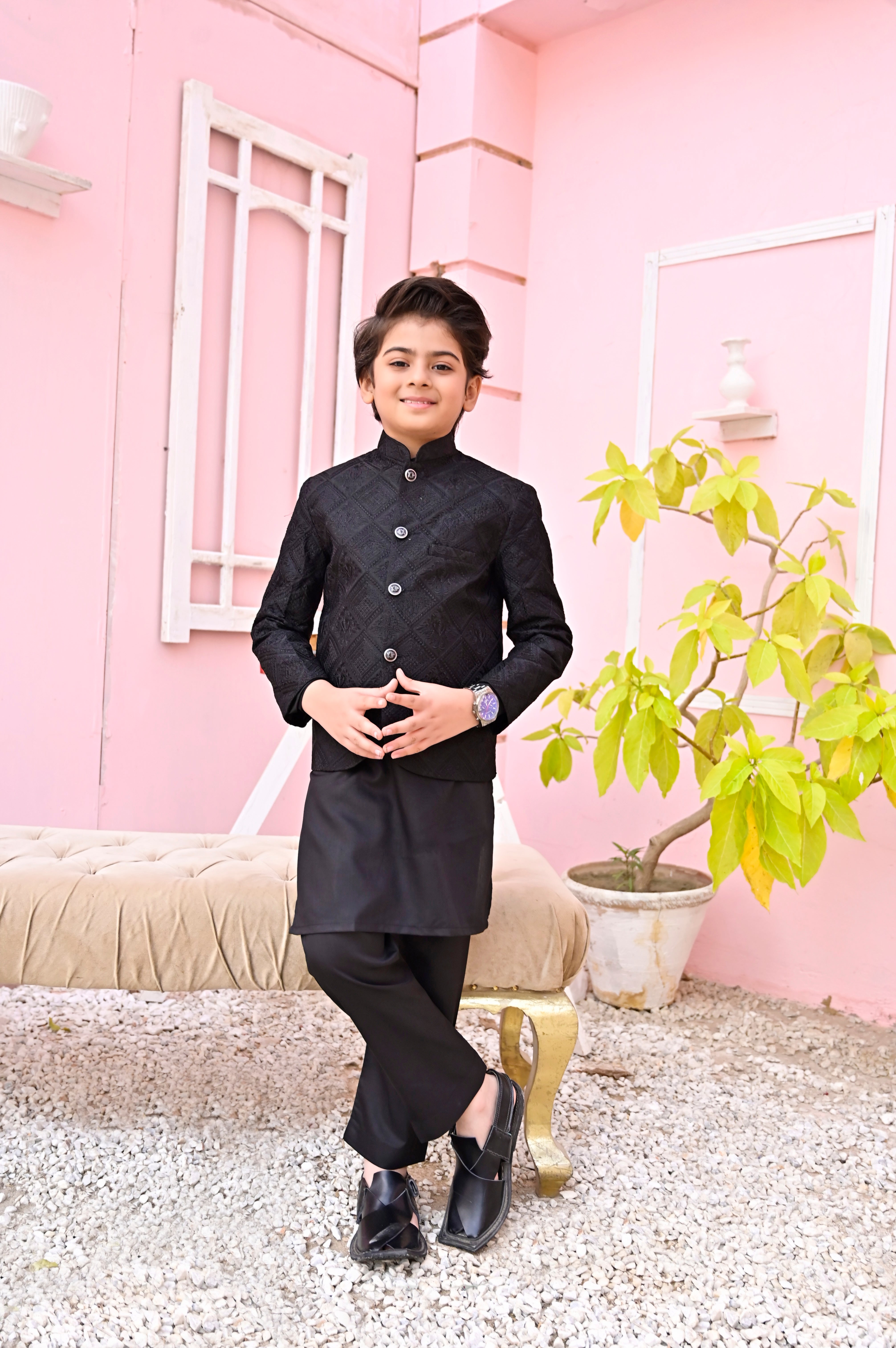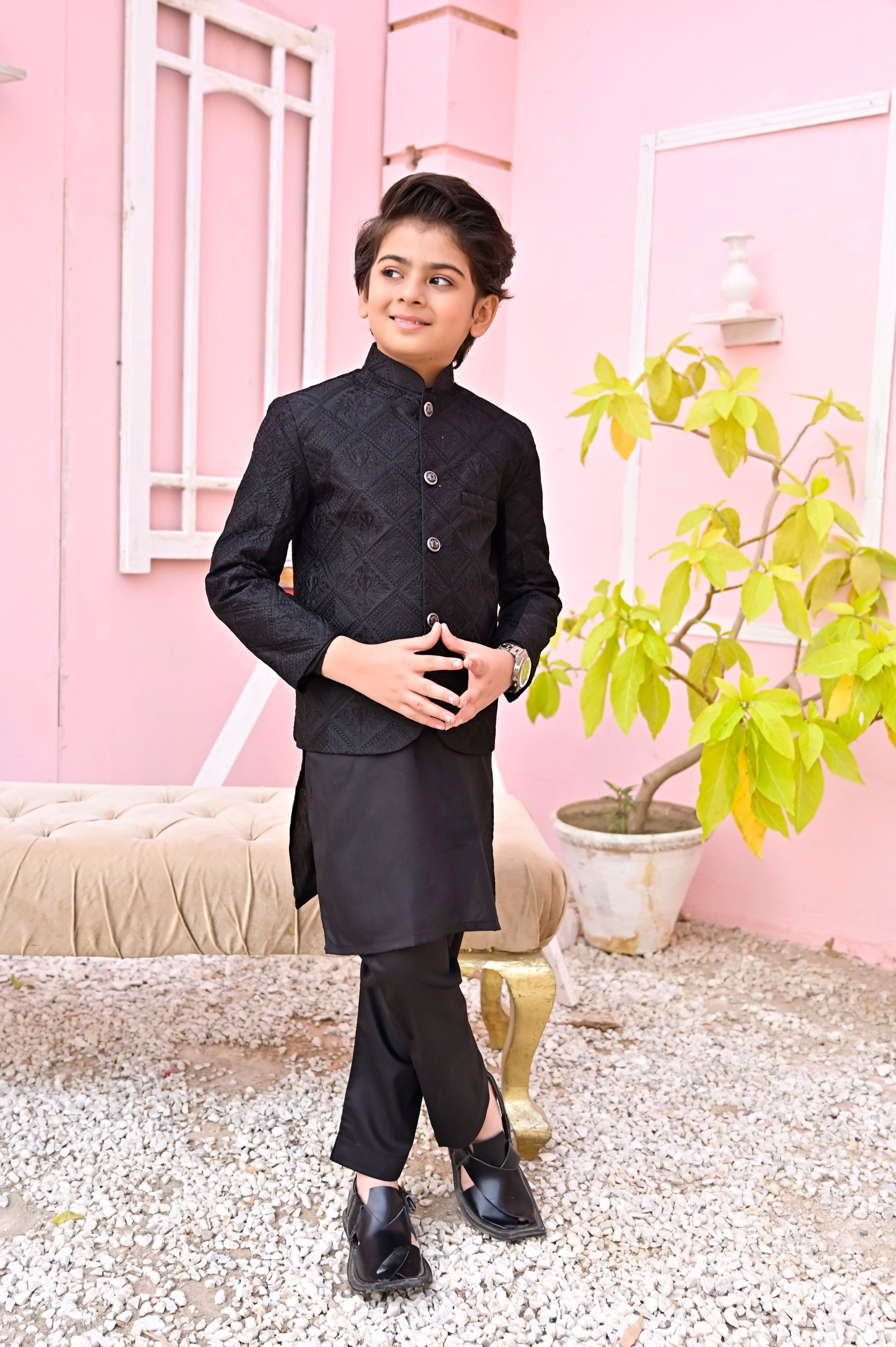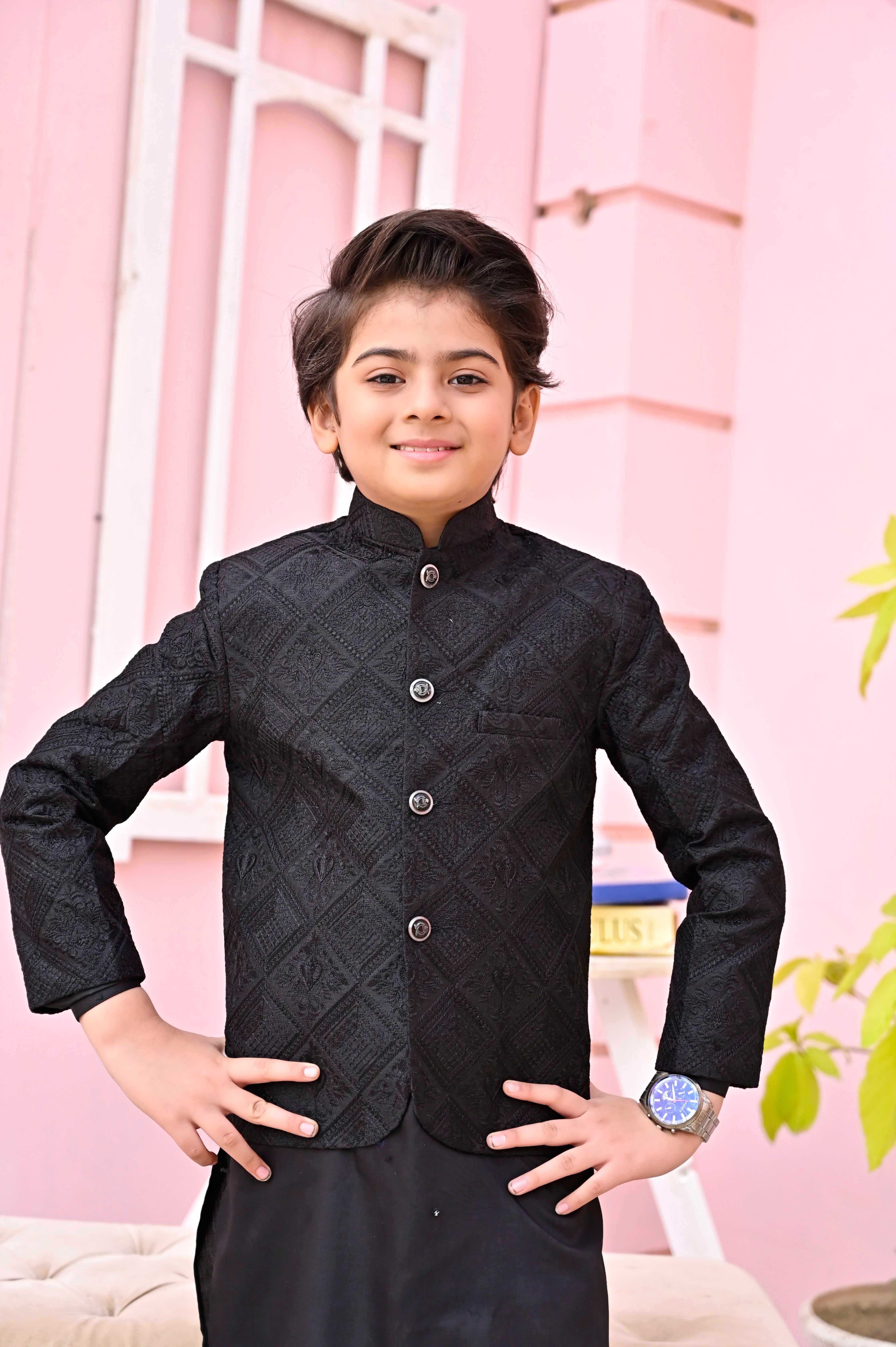 This black prince coat is a stunning piece with intricate embroidery. It looks elegant and majestic. The black colors adds a touch of sophistication, while the embroidery adds a unique and eye-catching detail. It’s the perfect choice for a special occasion or when you want to make a statement.