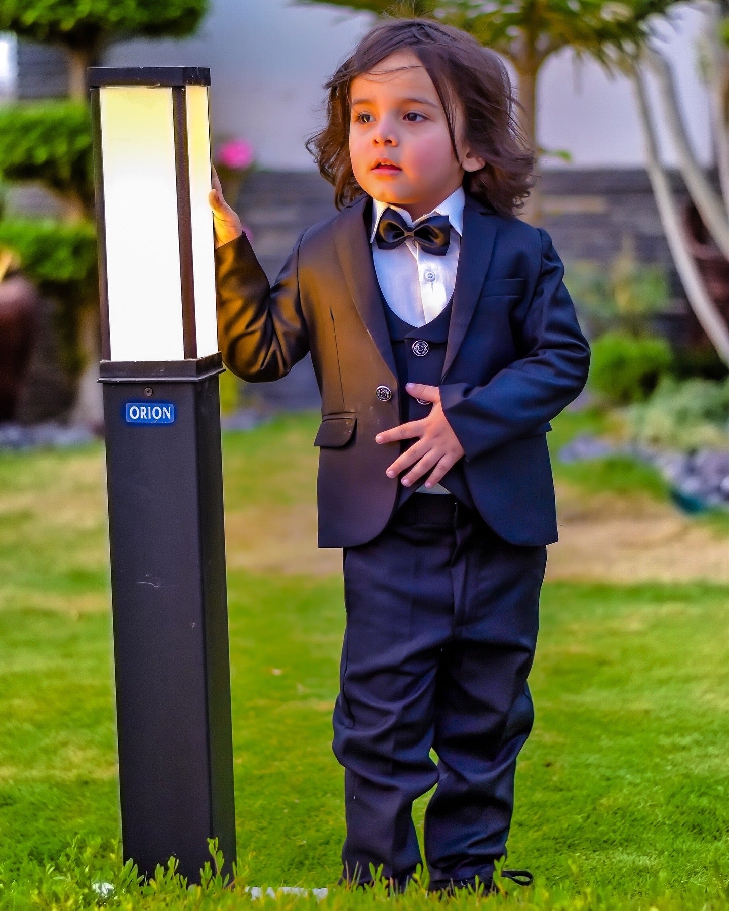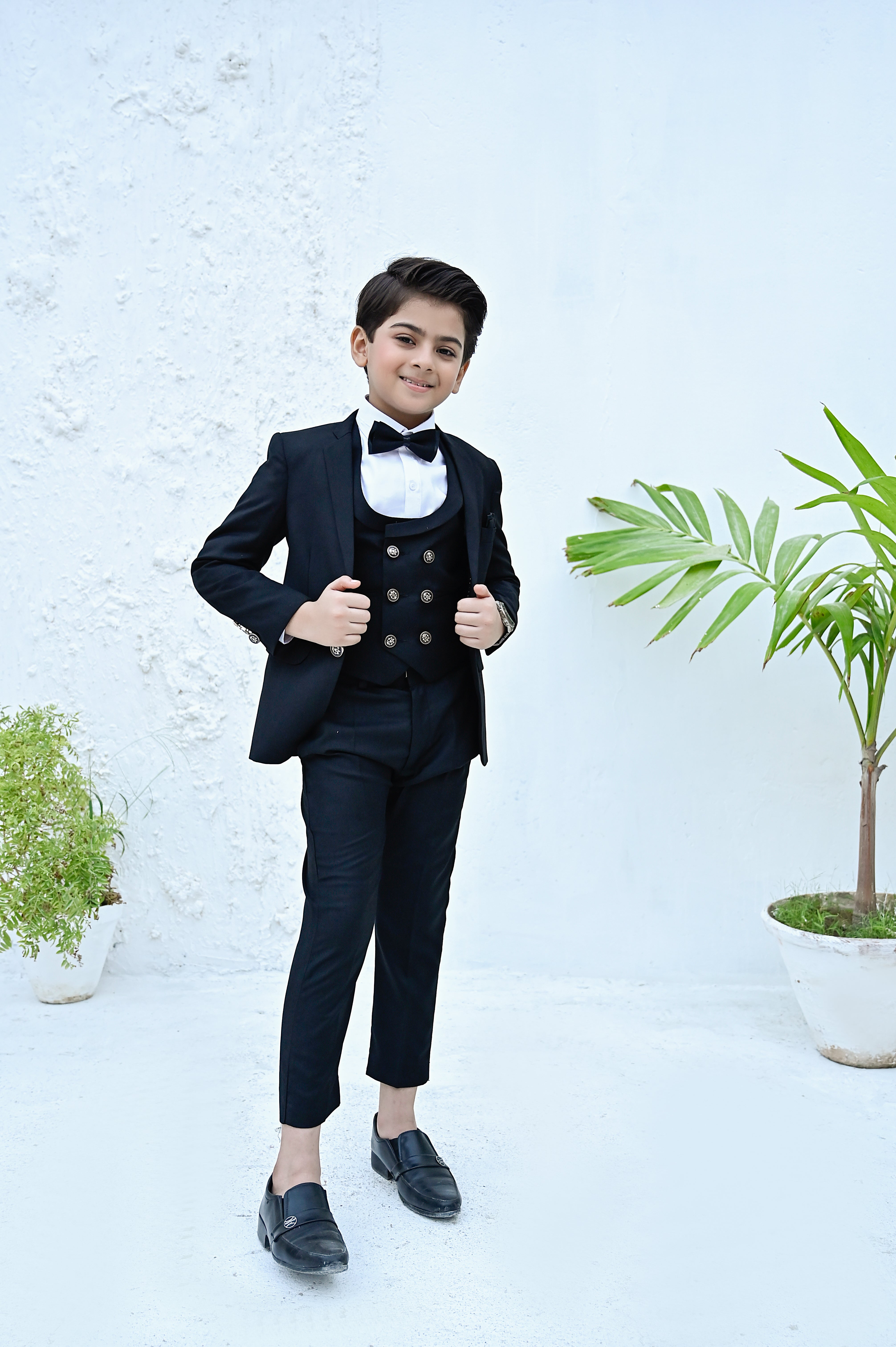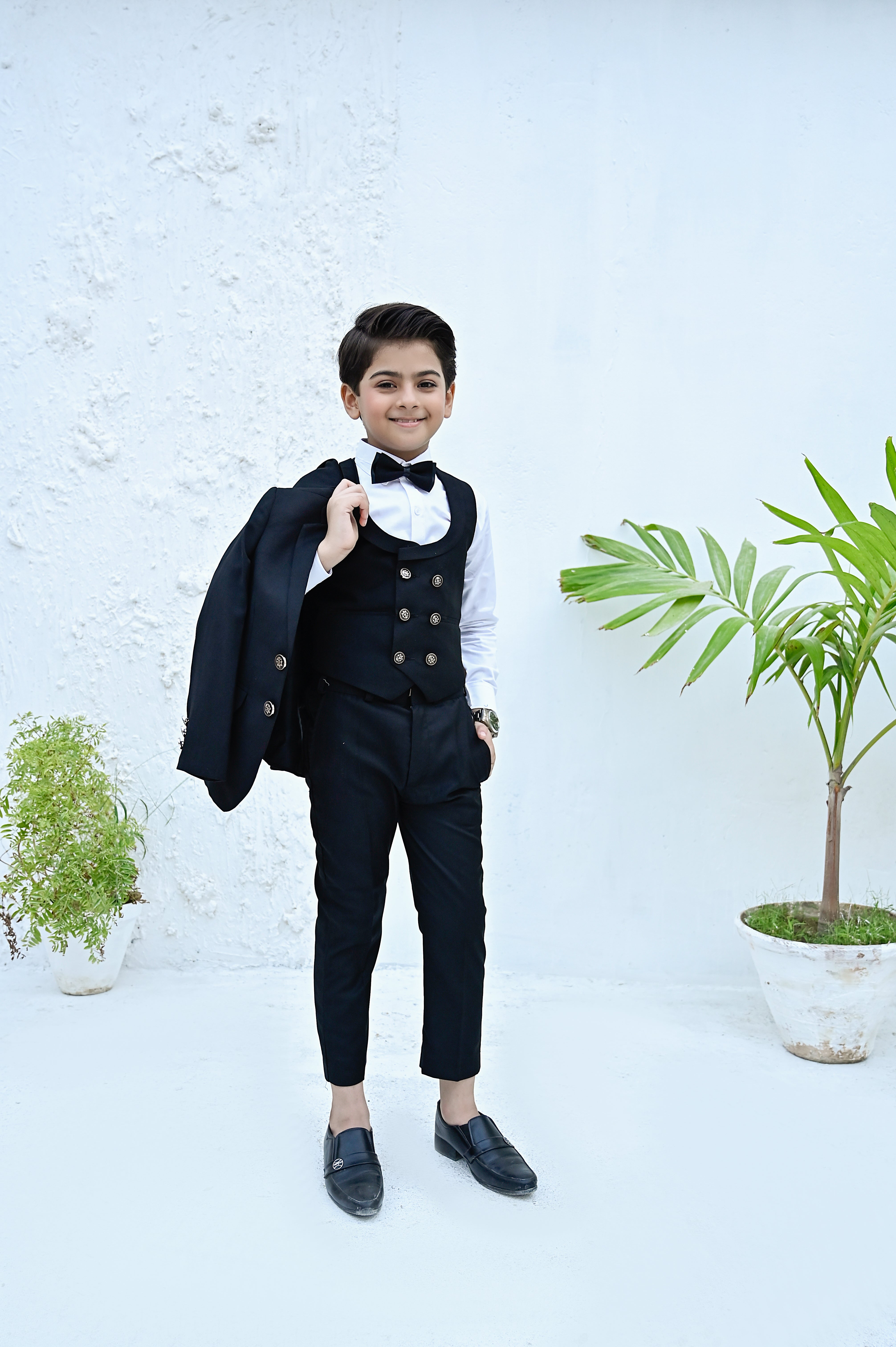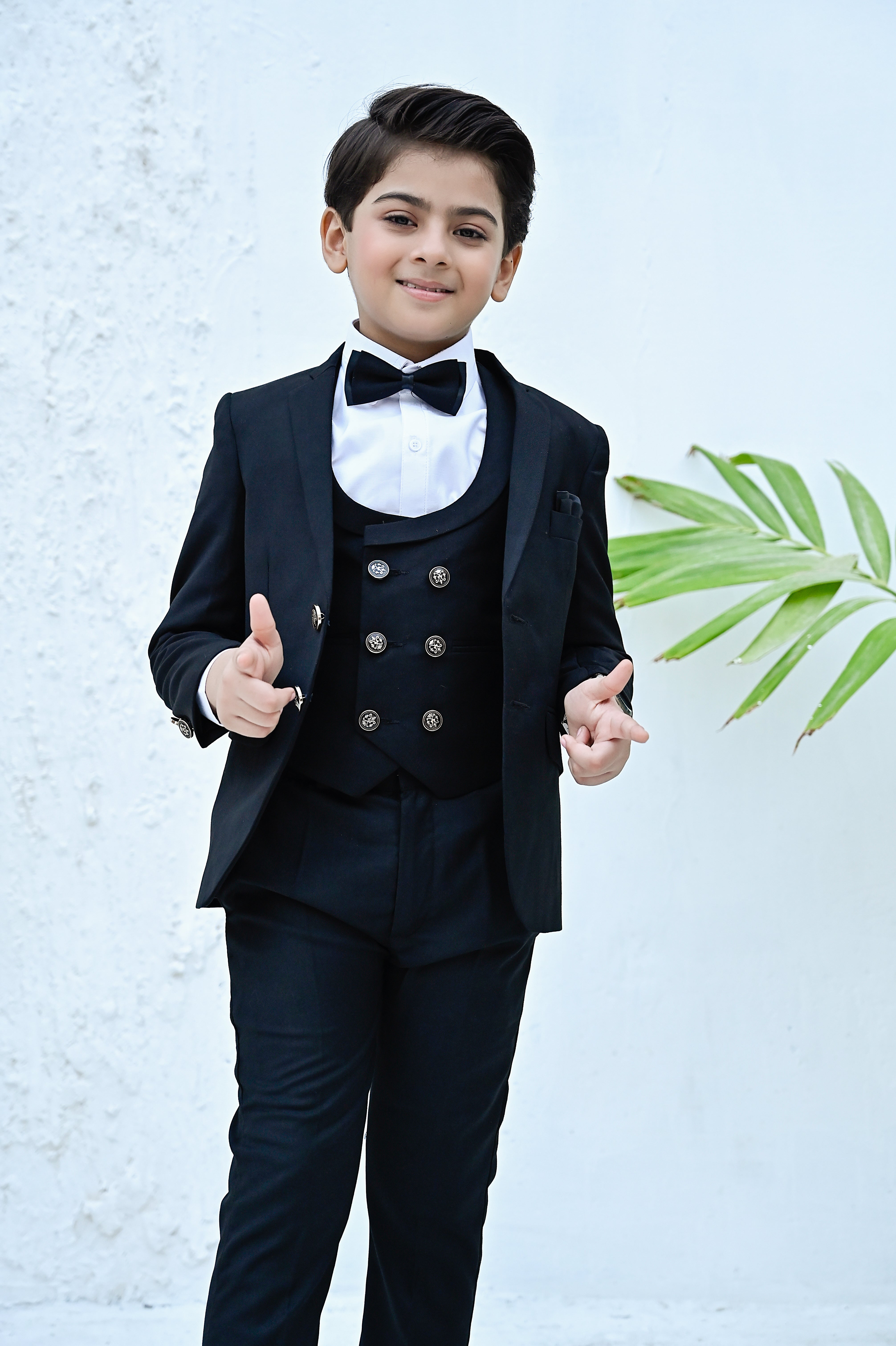 Includes (Black Coat+Black Waistcoat+Black Pant+White Shirt+Black Bow).