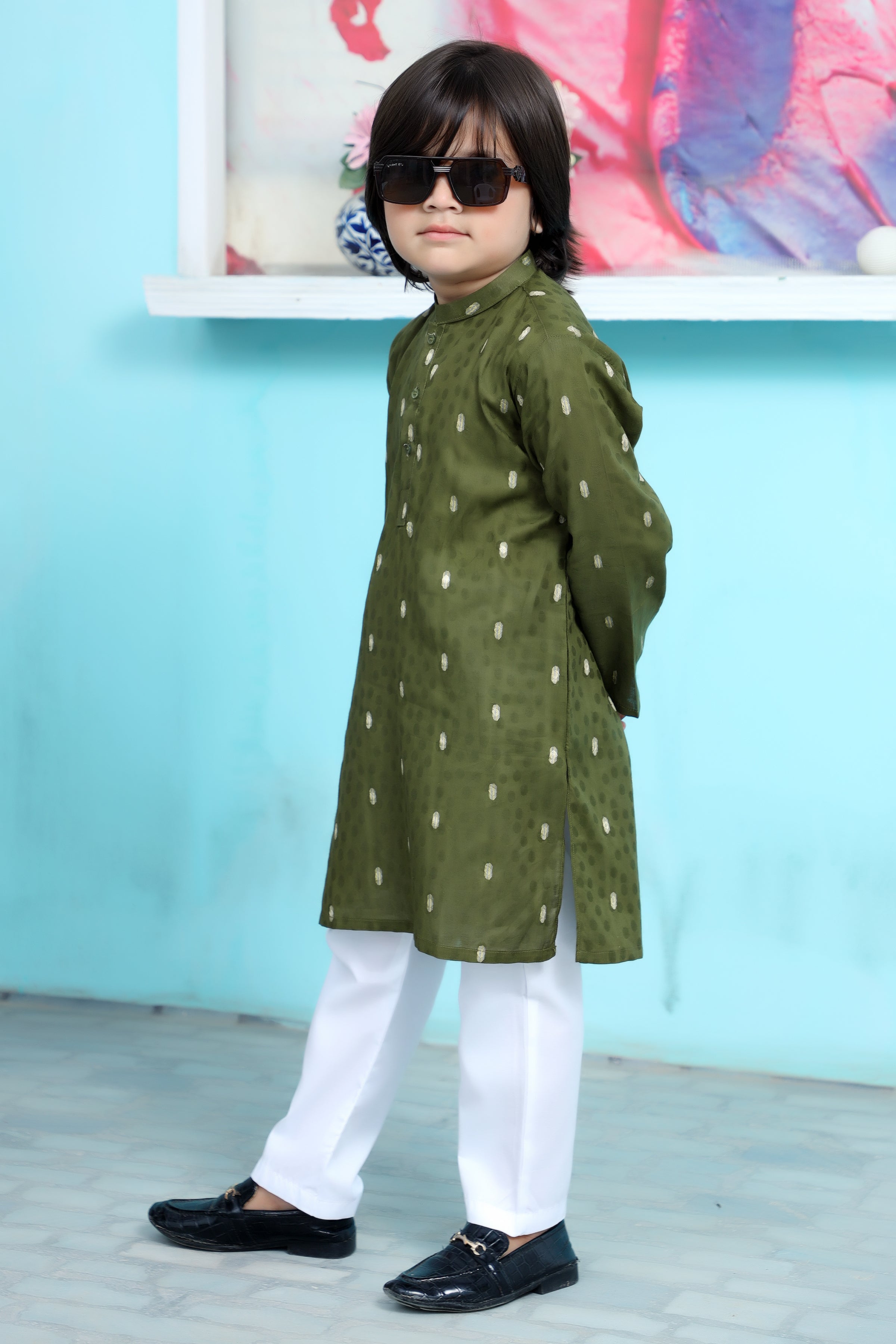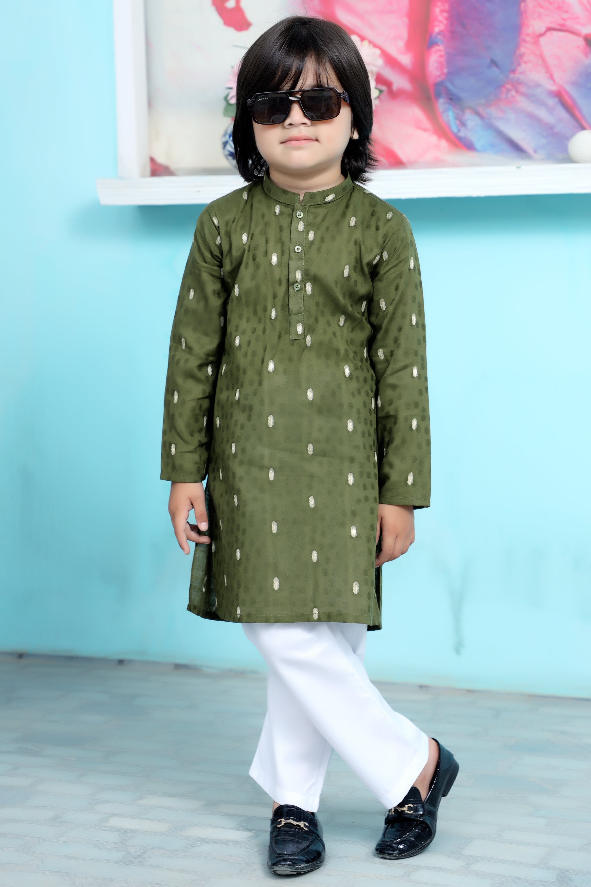 The kurta is a stylish shade of Apple Green and features intricate detailing work, which adds a touch of elegance. The Cotton fabric makes it super convenient to maintain. The pajama is a White Color, completing the look with a comfortable fit. It's the perfect combo of style and ease!
