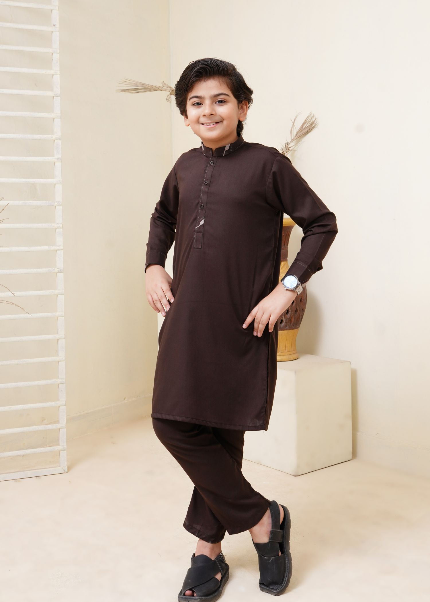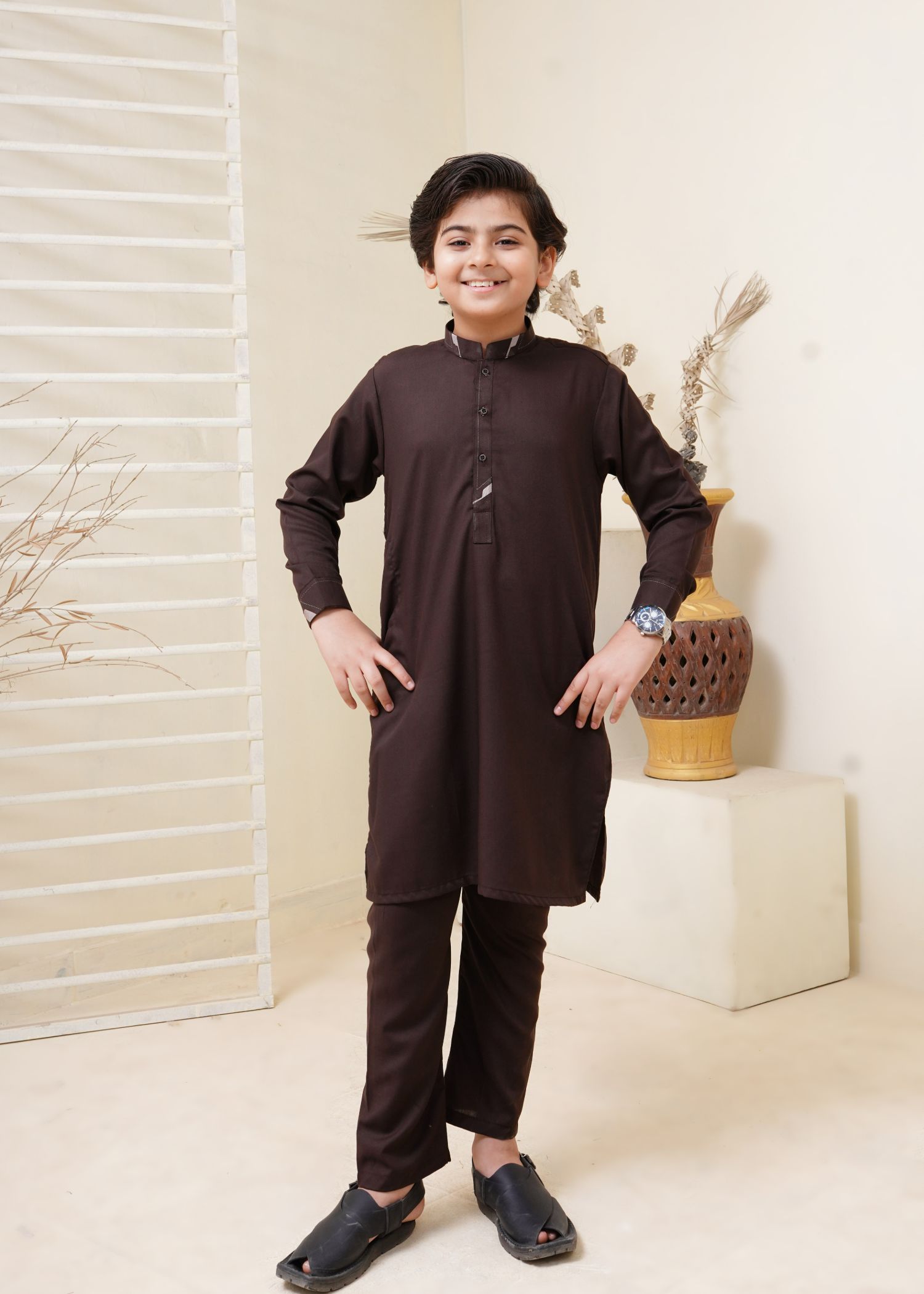 The brown kurta is a stylish shade and features intricate detailing work, which adds a touch of elegance. The wash and wear fabric makes it super convenient to maintain. The pajama is a matching brown color, completing the look with a comfortable fit. It's the perfect combo of style and ease!