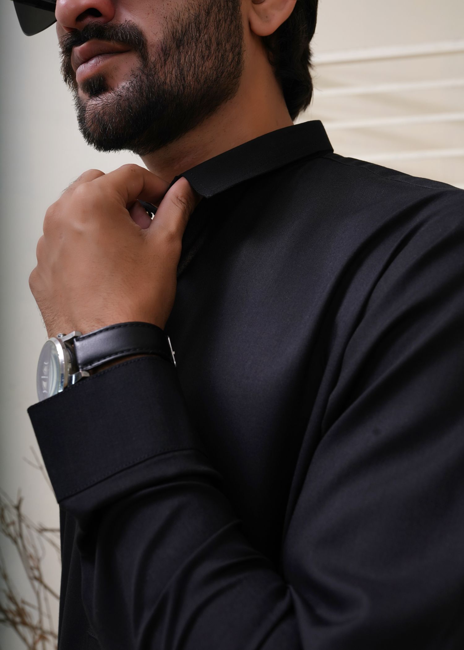 Black Shirt Collar Kameez Shalwar with Metal Button- HM 005