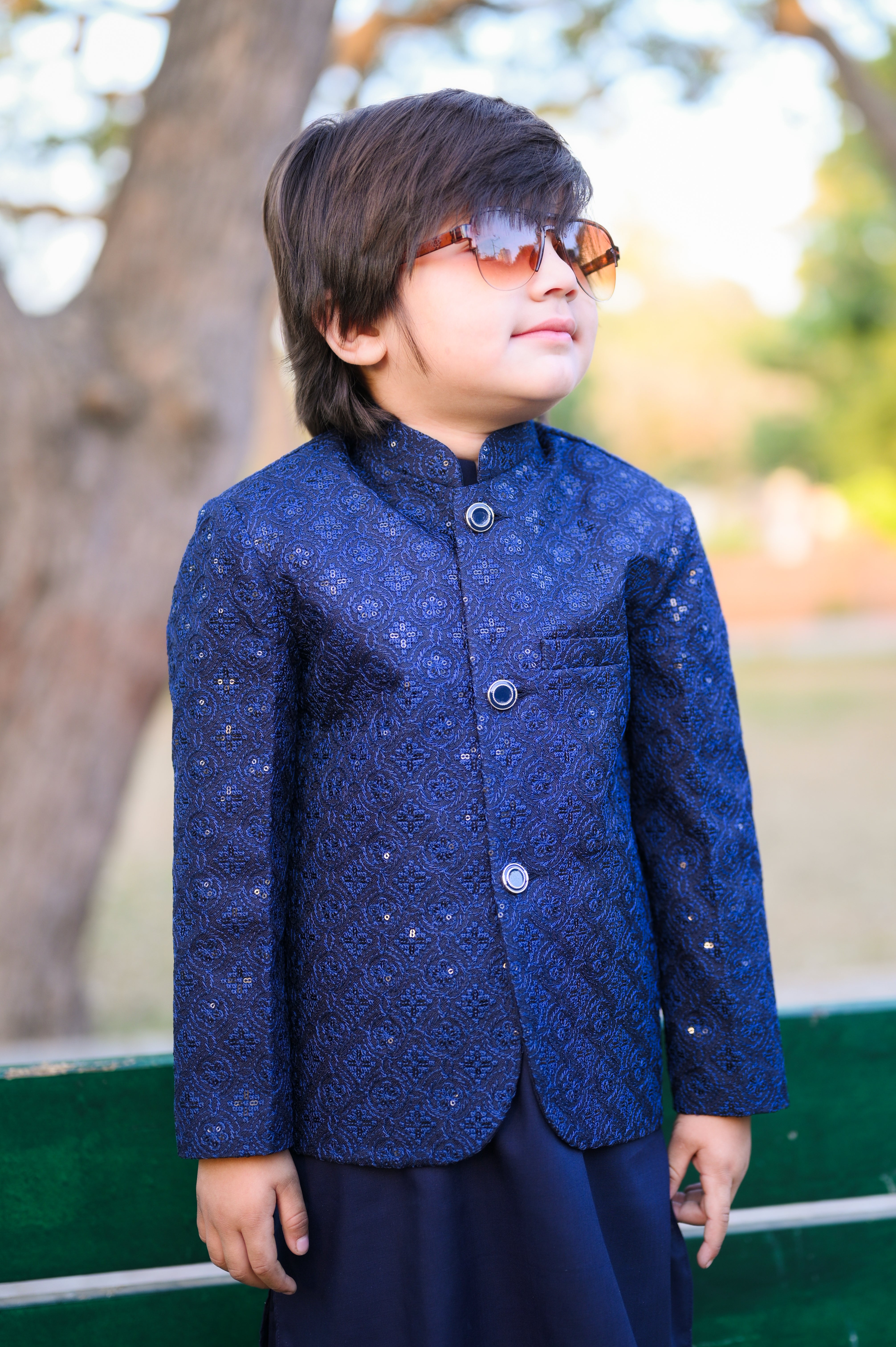 This blue prince coat in raw silk with sequin embroidery is absolutely stunning. The combination of blue color and the sequin embroidery creates a truly mesmerizing effect. The raw silk fabric adds a luxurious touch, giving the coat a regal and elegant look. It’s the perfect choice for a wedding or formal event where you want to stand out