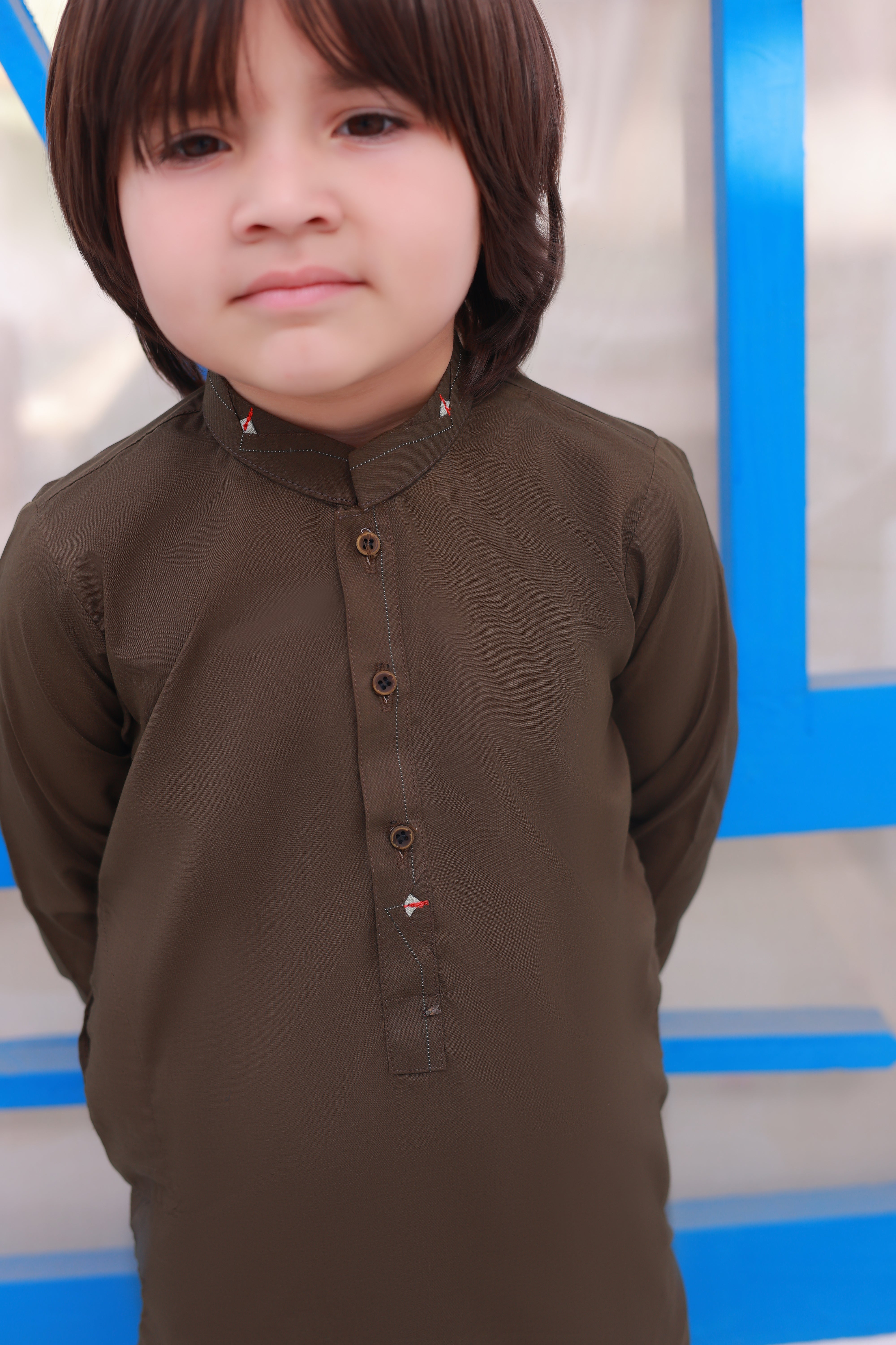 The brown kurta is a stylish shade and features intricate detailing work, which adds a touch of elegance. The wash and wear fabric makes it super convenient to maintain. The pajama is a matching brown color, completing the look with a comfortable fit. It's the perfect combo of style and ease!