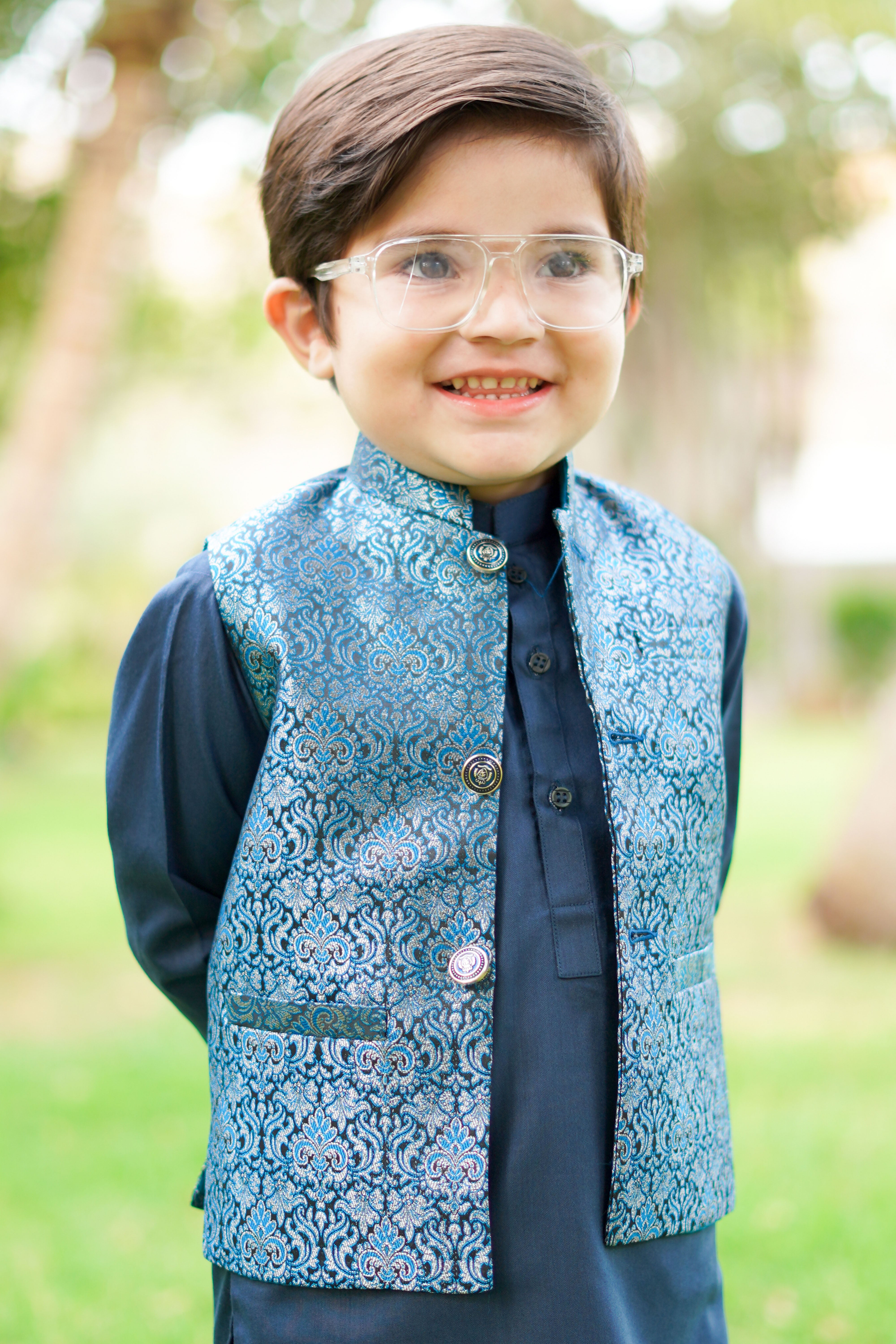 The combination of blue is always a classic and sophisticated choice. The blue  kurta adds a touch of elegance, while the jamawar blue waistcoat with its intricate detailing and shimmering fabric takes the outfit to another level. It's a perfect choice for special occasions or formal events where you want to make a statement. You'll definitely turn heads and feel like a true fashion icon in this ensemble!