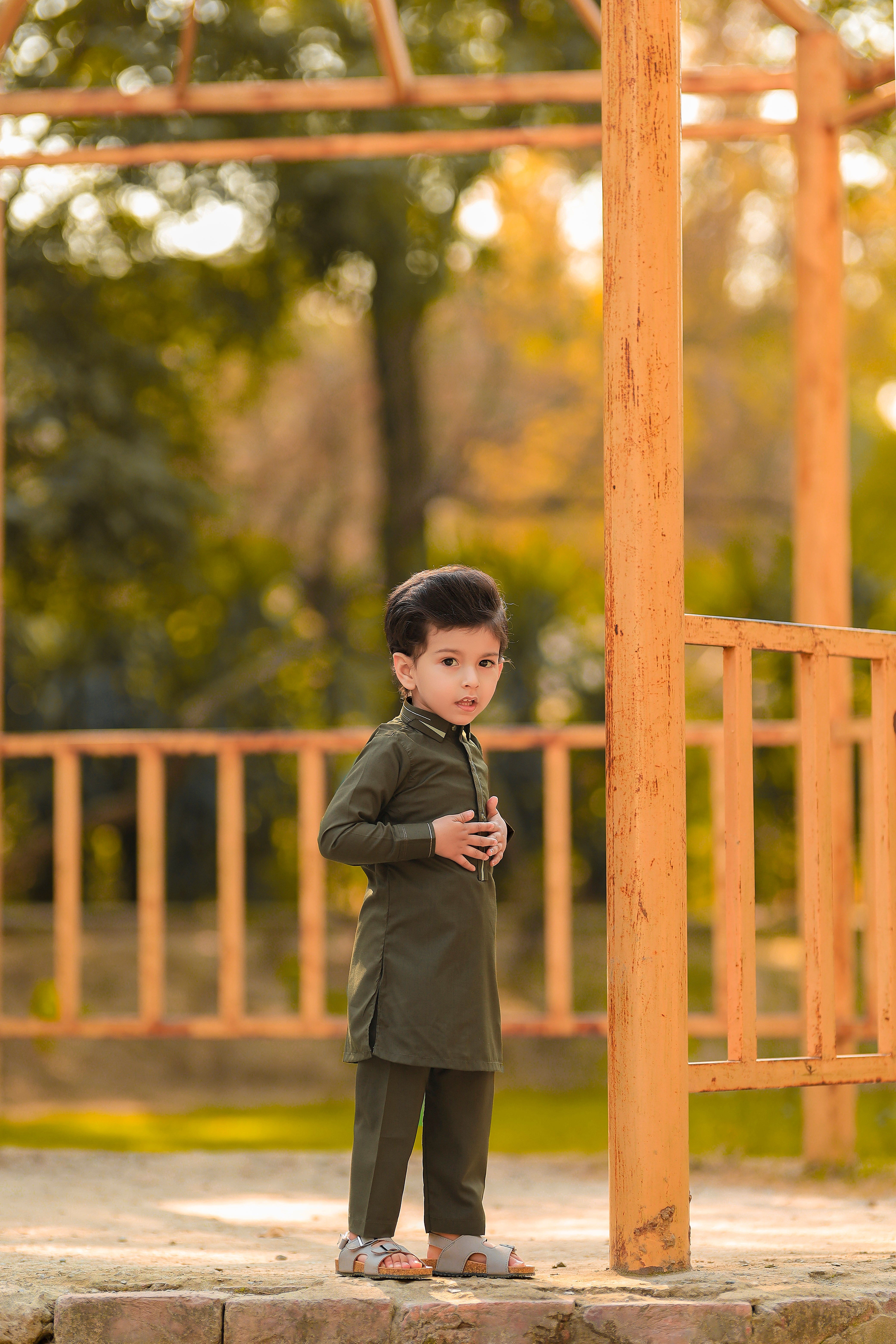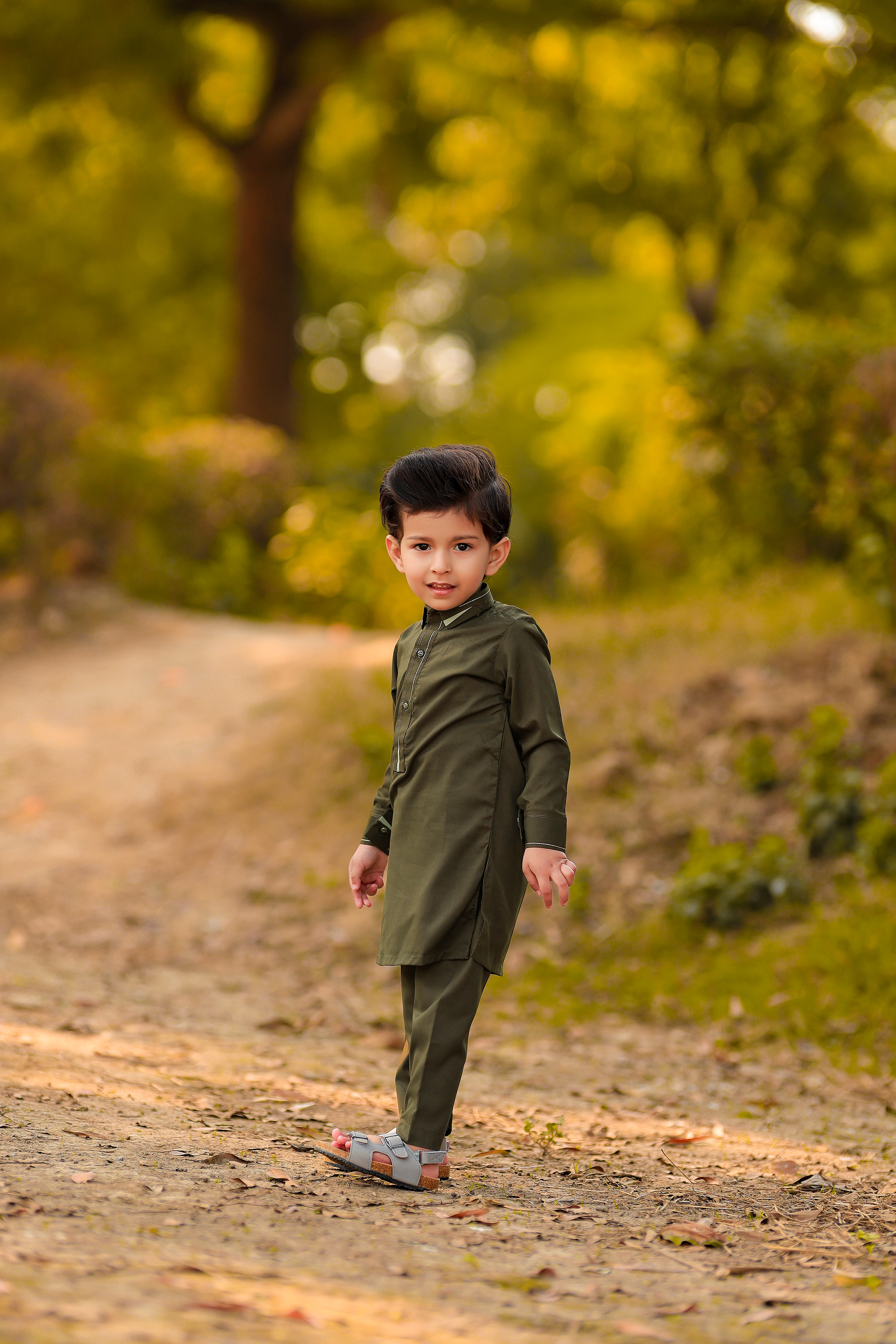 The olive green kurta is a stylish shade and features intricate detailing work, which adds a touch of elegance. The wash and wear fabric makes it super convenient to maintain. The pajama is a matching white color, completing the look with a comfortable fit. It's the perfect combo of style and ease!