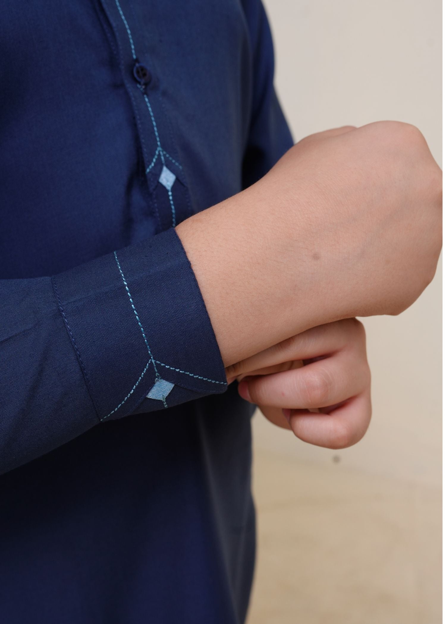 The blue kurta is a stylish shade and features intricate detailing work, which adds a touch of elegance. The wash and wear fabric makes it super convenient to maintain. The pajama is a matching blue color, completing the look with a comfortable fit. It's the perfect combo of style and ease!