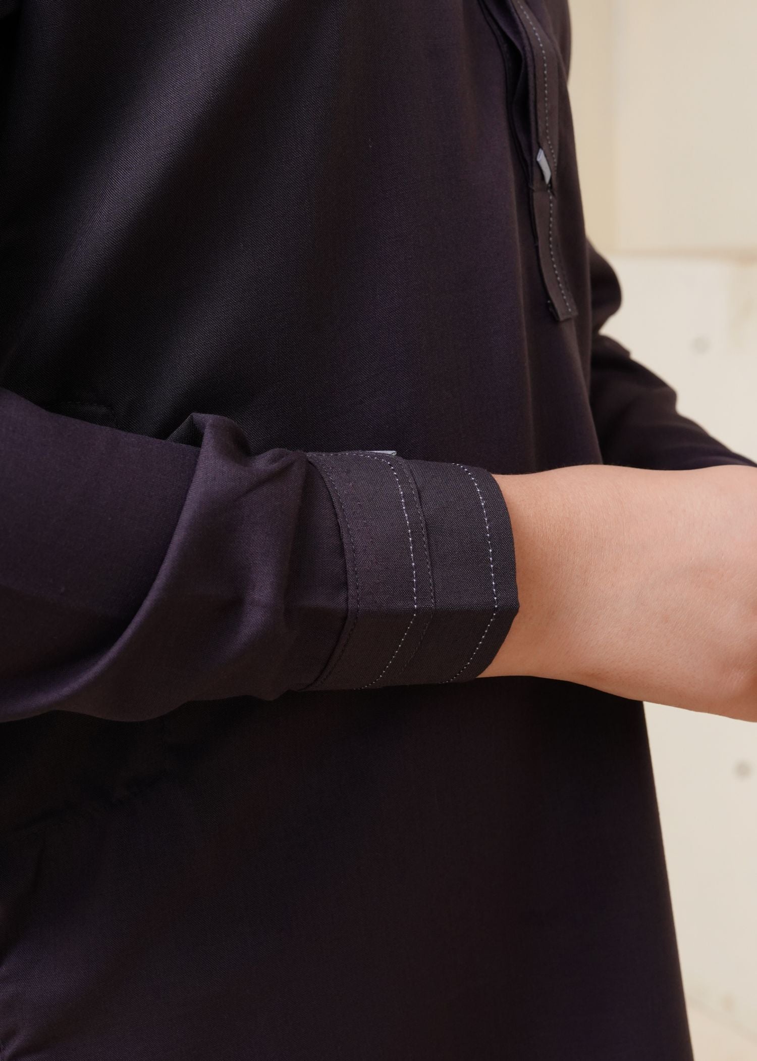 The purple kurta is a stylish shade and features intricate detailing work, which adds a touch of elegance. The wash and wear fabric makes it super convenient to maintain. The pajama is a matching purple color, completing the look with a comfortable fit. It's the perfect combo of style and ease!