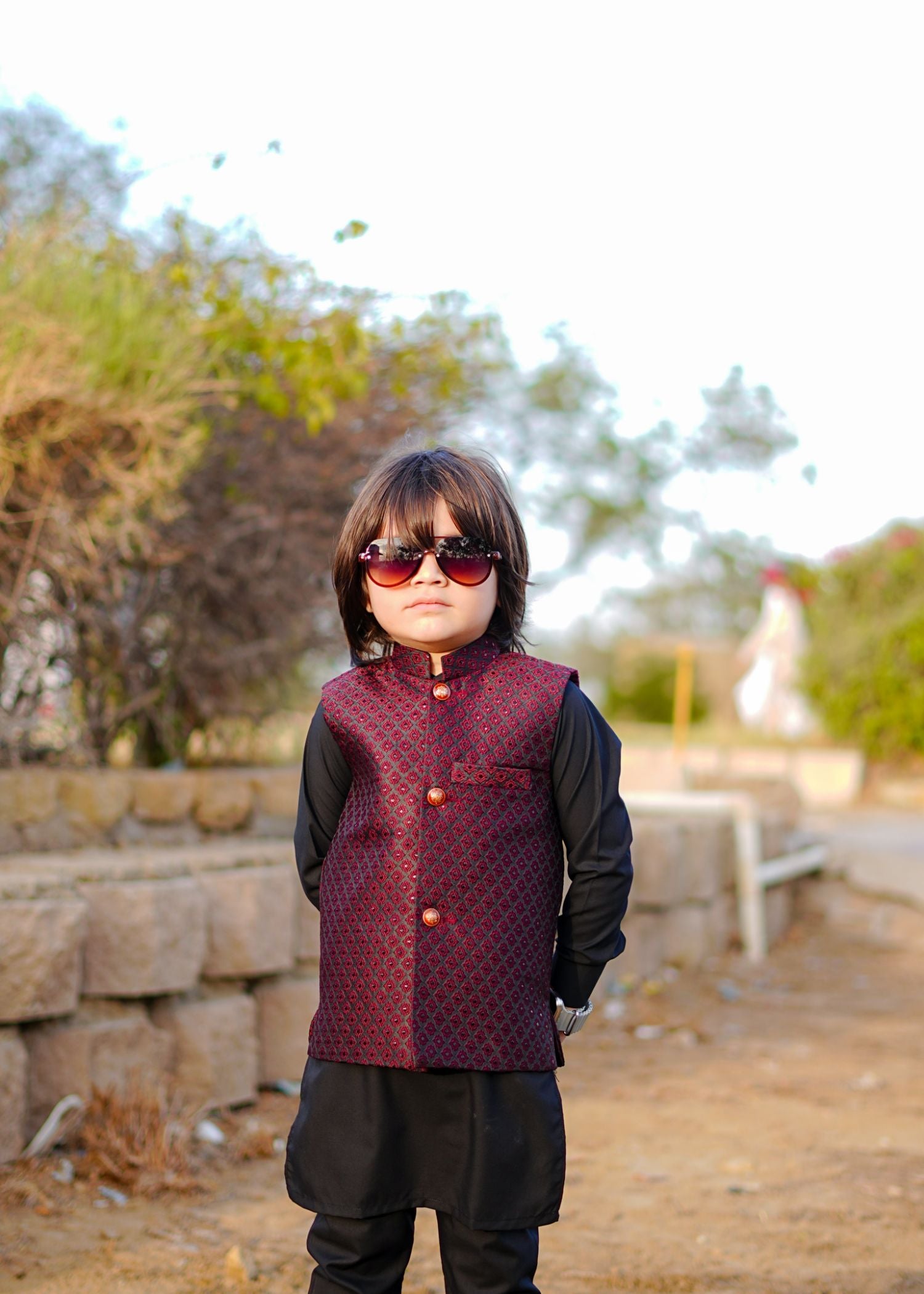 The combination of Maroon is always a classic and sophisticated choice. The white kurta adds a touch of elegance, while the Maroon Sequence waistcoat with its intricate detailing and shimmering fabric takes the outfit to another level. It's a perfect choice for special occasions or formal events where you want to make a statement. You'll definitely turn heads and feel like a true fashion icon in this ensemble!