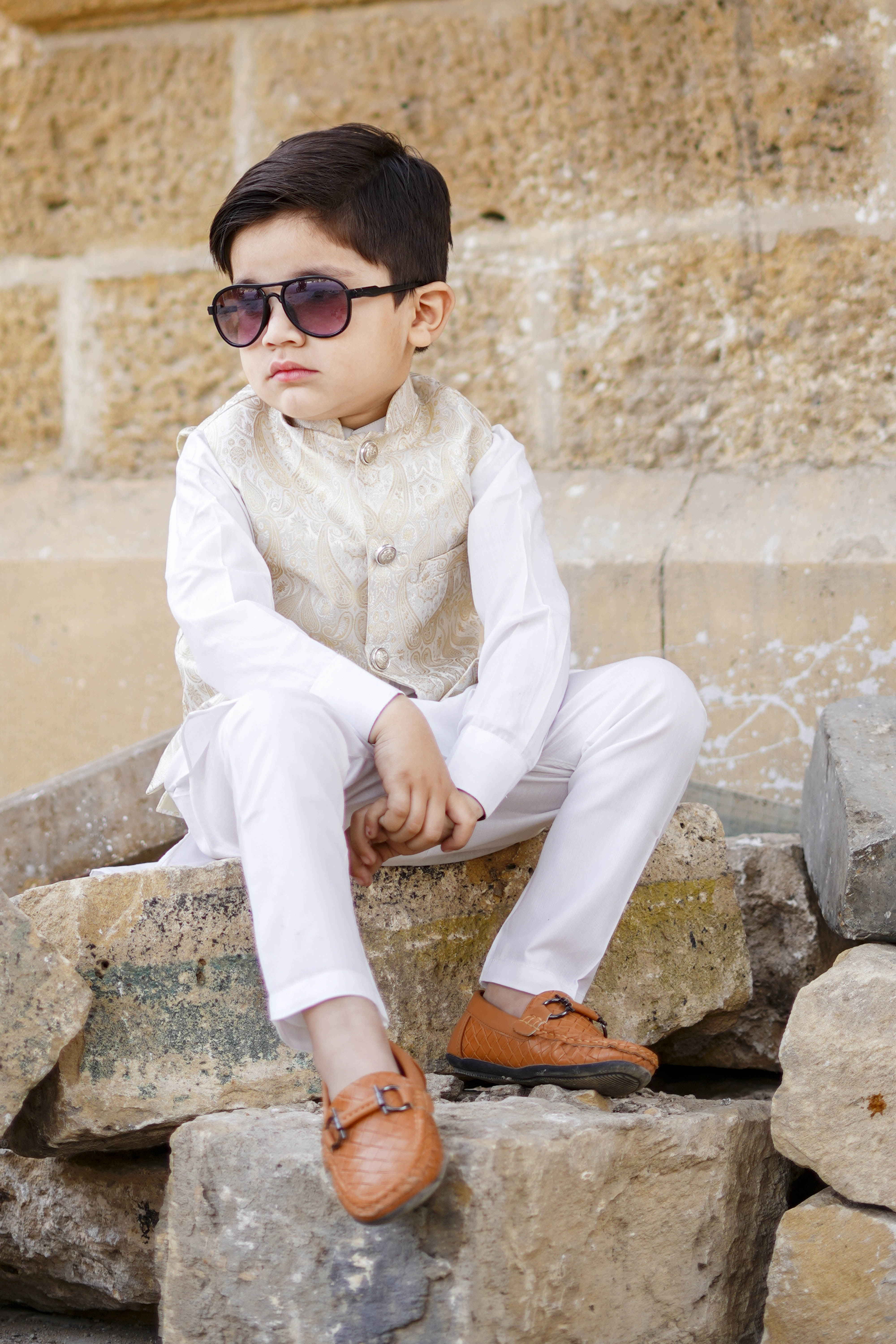 The combination of white and gold is always a classic and sophisticated choice. The white kurta adds a touch of elegance, while the jamawar golden waistcoat with its intricate detailing and shimmering fabric takes the outfit to another level. It's a perfect choice for special occasions or formal events where you want to make a statement. You'll definitely turn heads and feel like a true fashion icon in this ensemble!