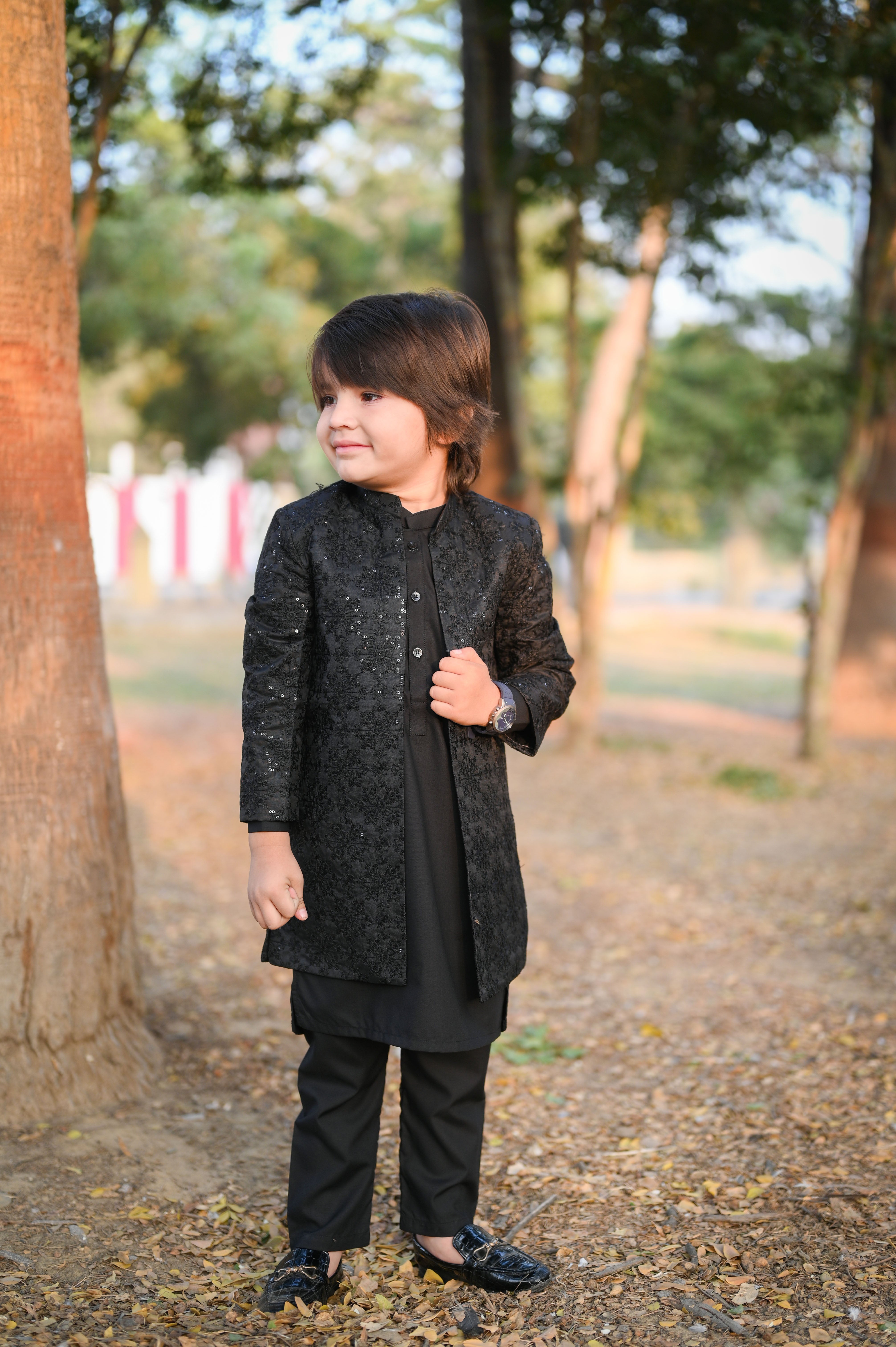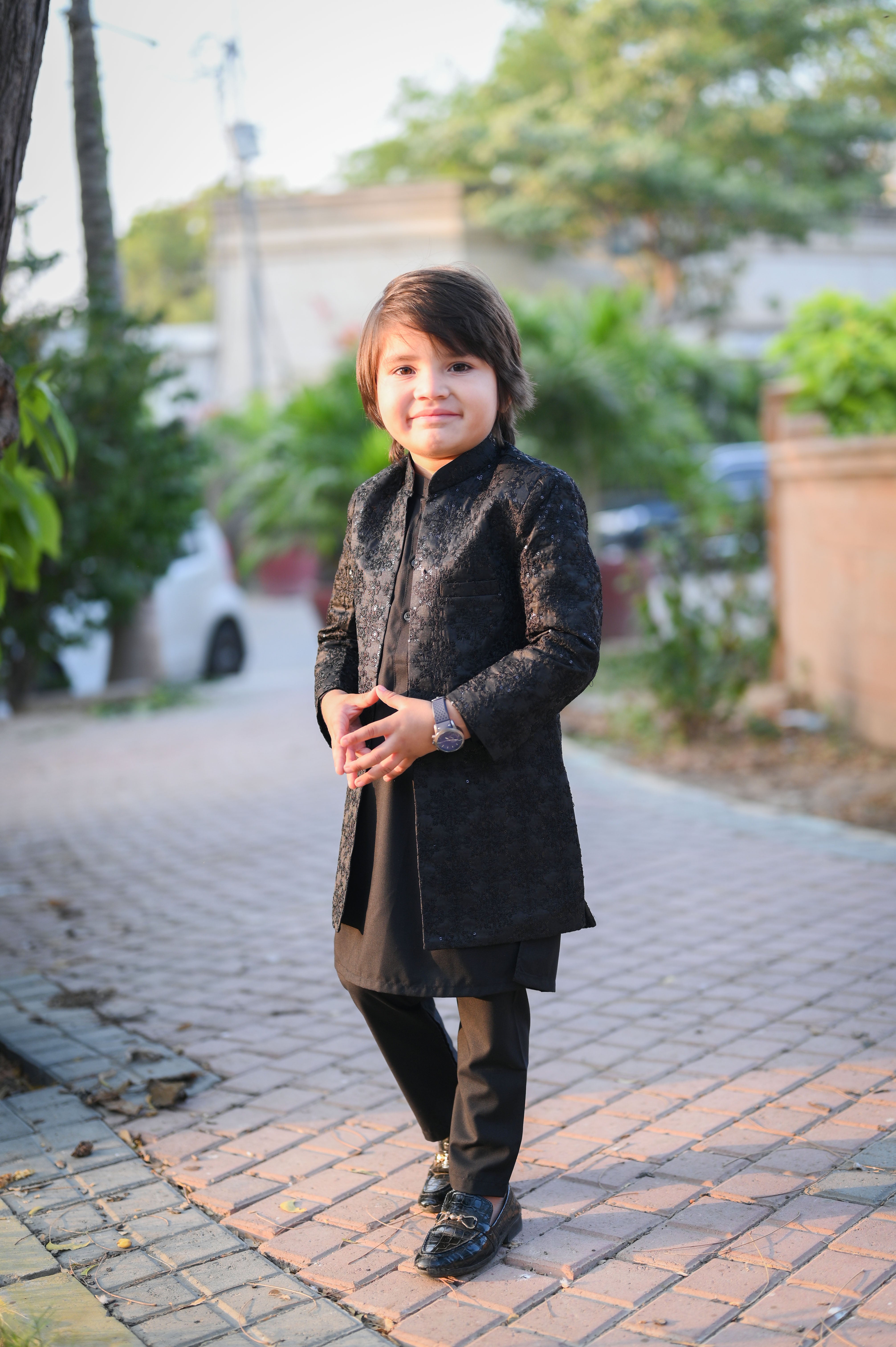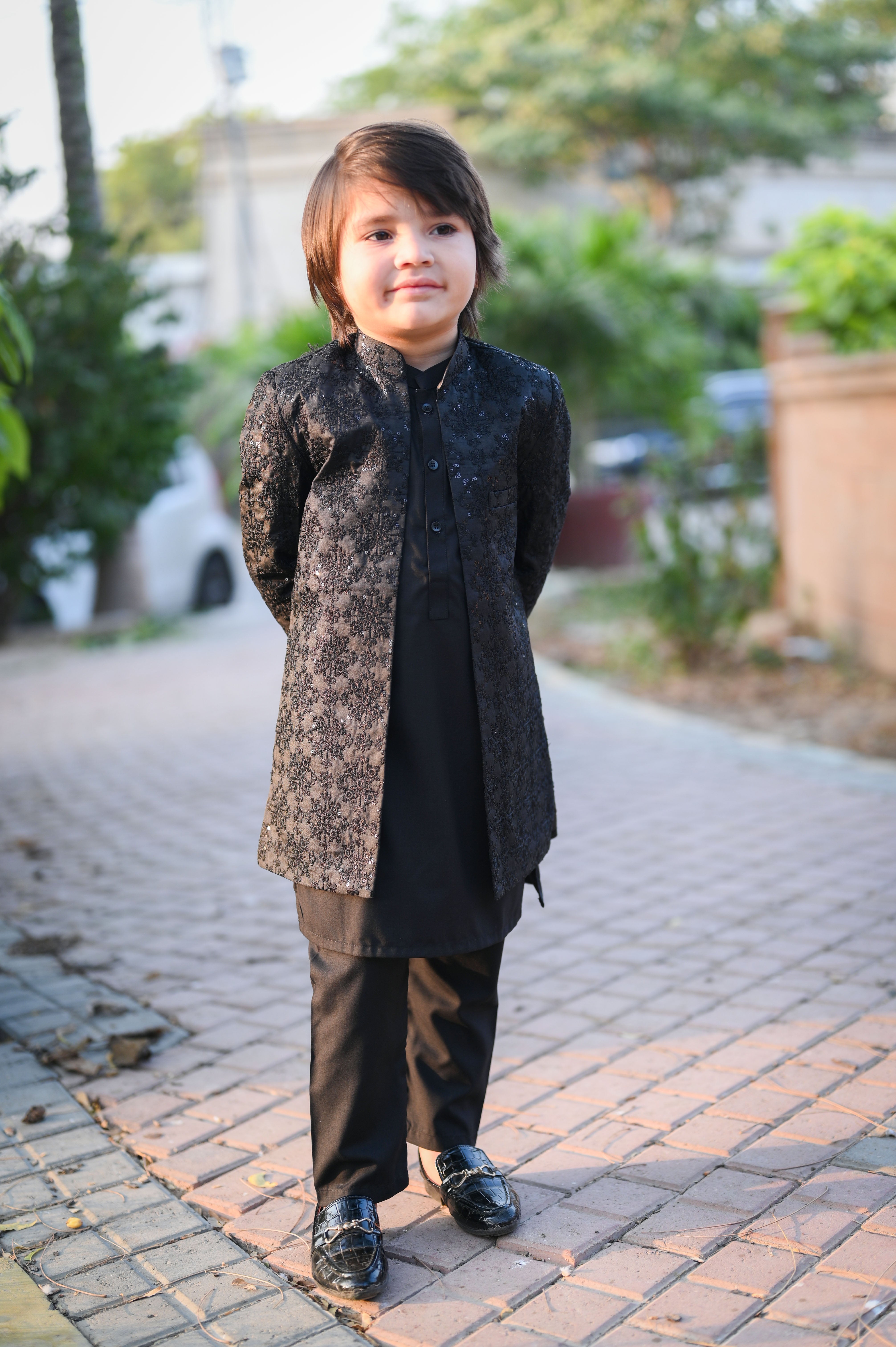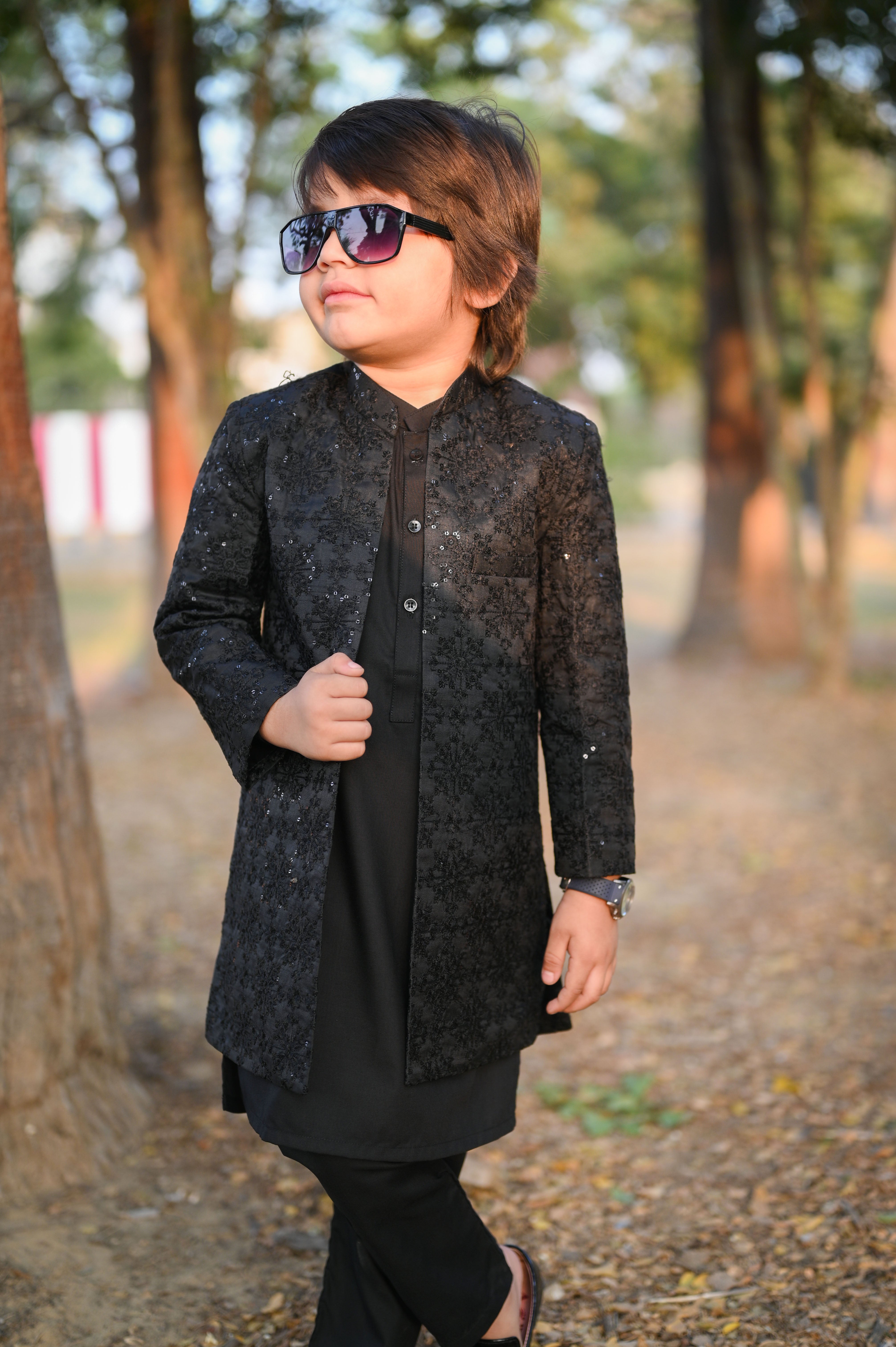 This black sherwani in jamawar is absolutely stunning. The combination of black color and the sequin embroidery creates a truly mesmerizing effect. The jamawar fabric adds a luxurious touch, giving the coat a regal and elegant look. It’s the perfect choice for a wedding or formal event where you want to stand out.