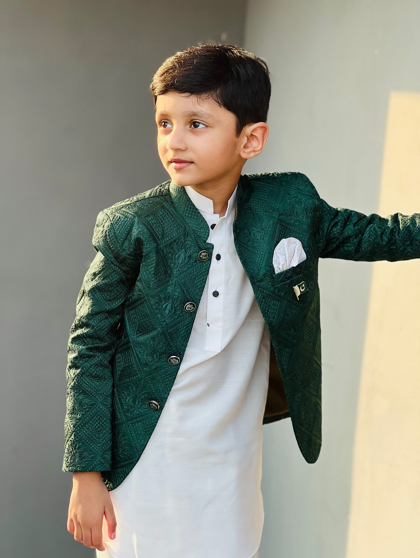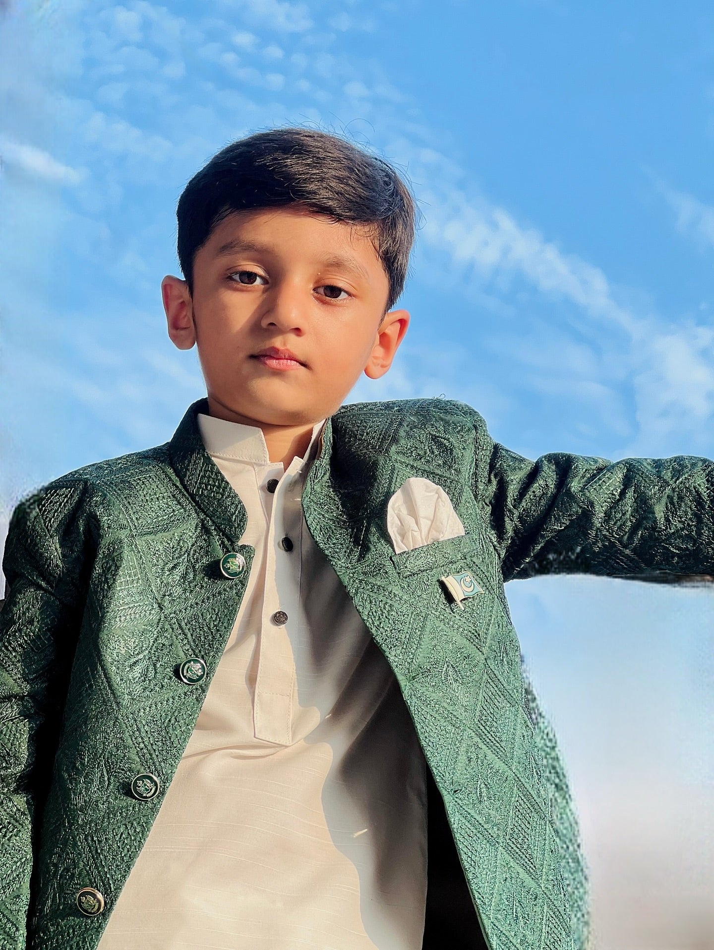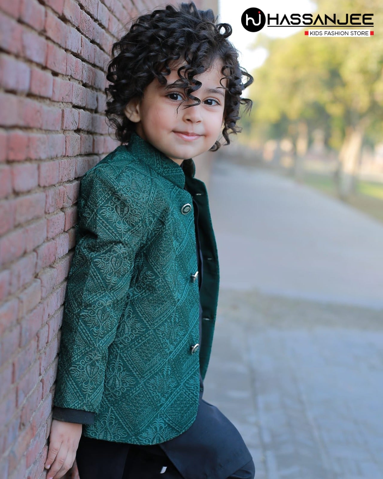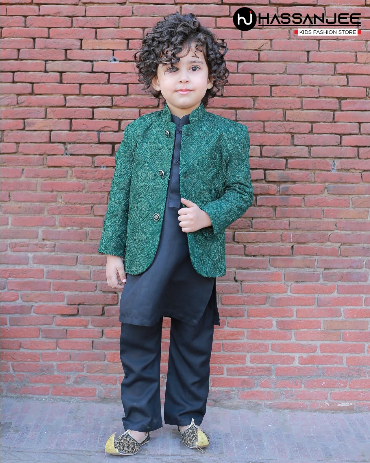 This green prince coat is a stunning piece with intricate embroidery. It looks elegant and majestic. The green colors adds a touch of sophistication, while the embroidery adds a unique and eye-catching detail. It’s the perfect choice for a special occasion or when you want to make a statement.